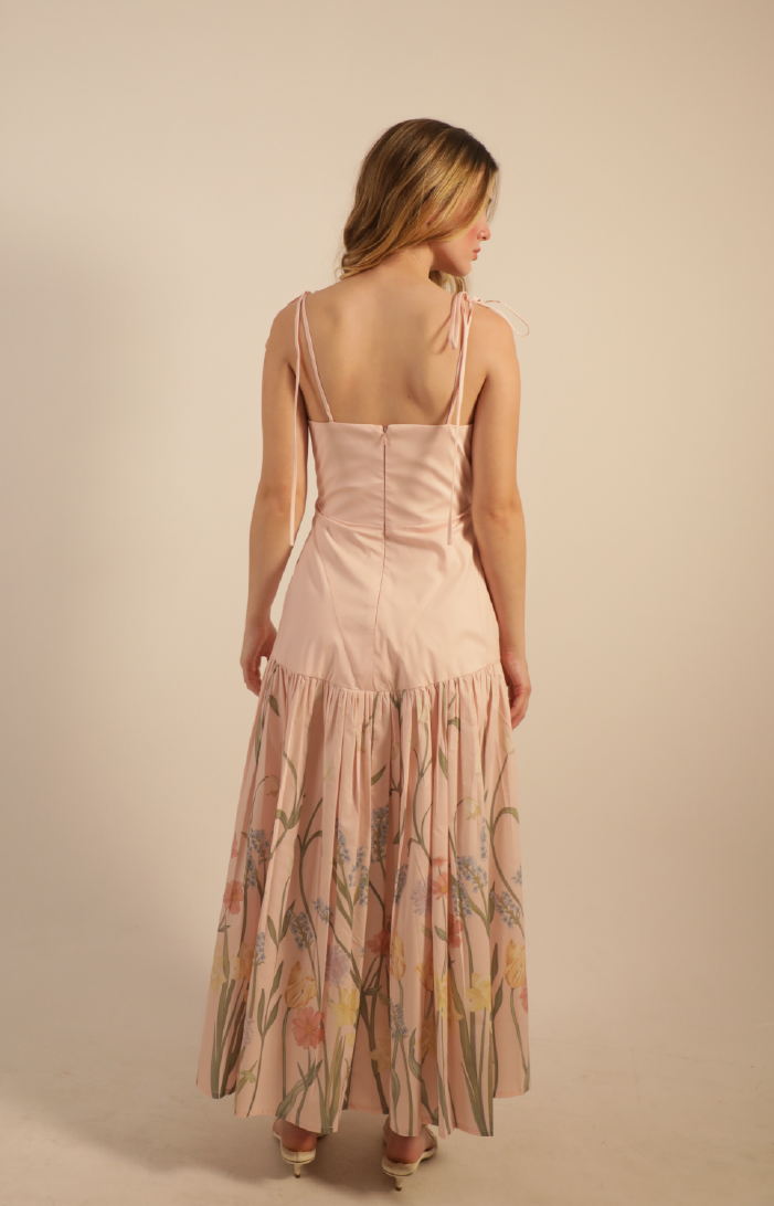 • Peachy Pink with Multicolored Floral Print at Hem