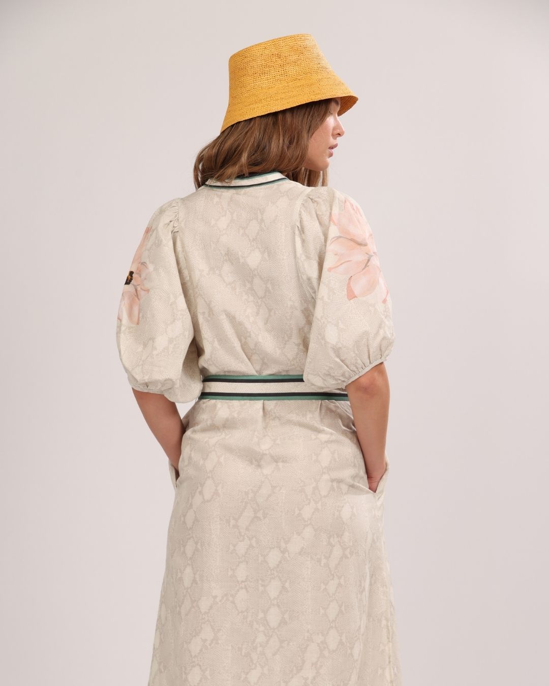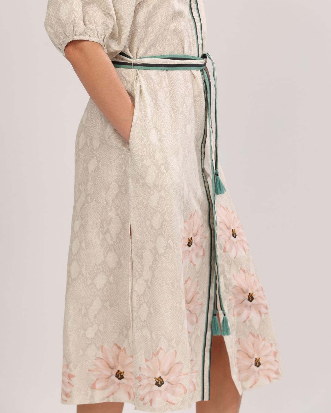 • Beige with Grey and Pink Snake and Floral Print