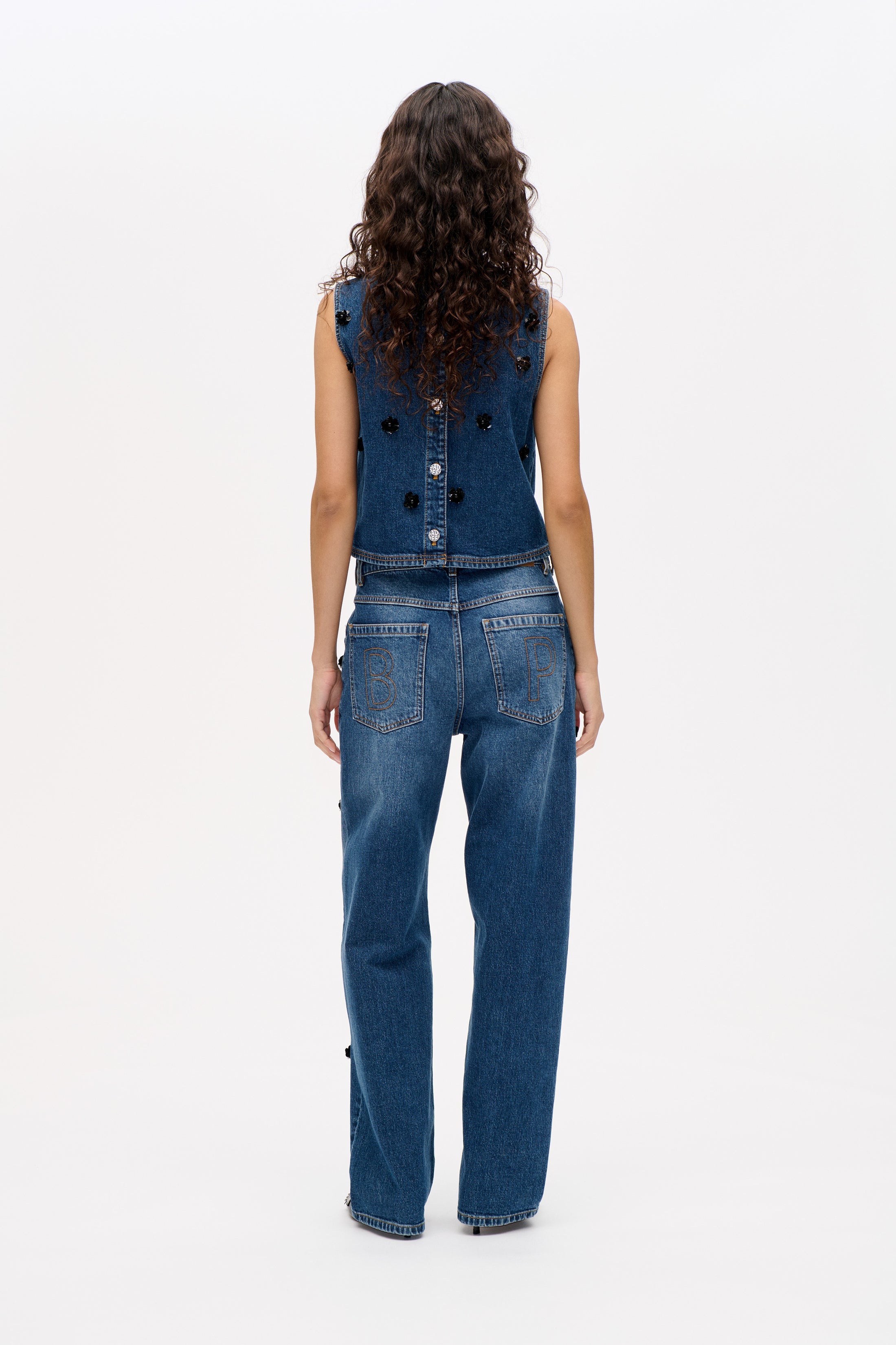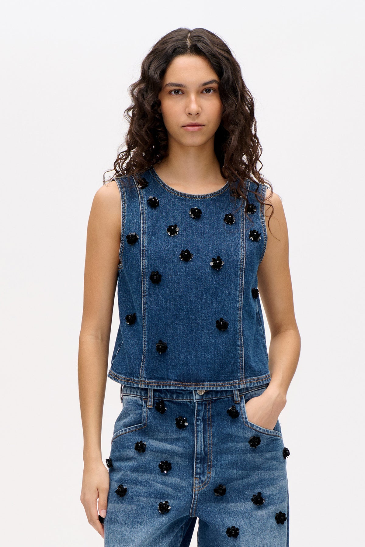 • Blue Denim with Black Floral Sequin/Beaded Embroidery