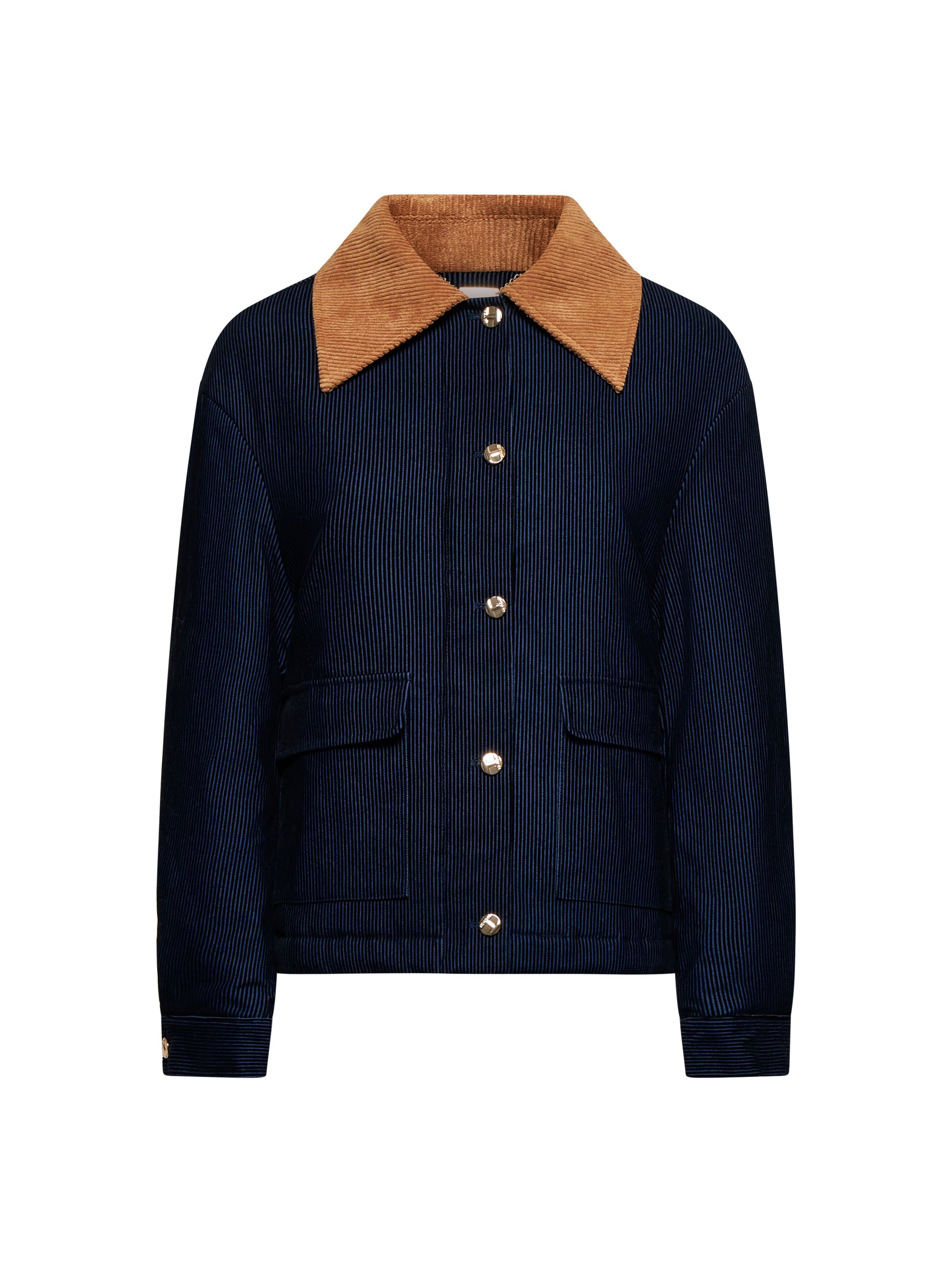 - Dark Indigo Blue Denim Wash with Contrast Camel Corduroy